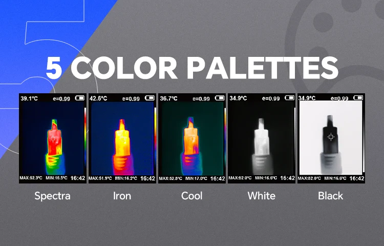●Color palette: Rainbow, Iron red, Cool color, White hot, Black hot, Rock red