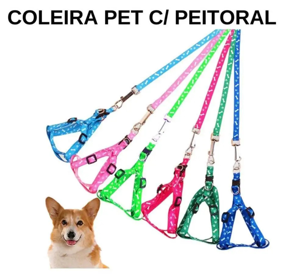 Conjunto Coleira Peitoral E Guia Para Cães e Gatos De Médio e Pequeno Porte