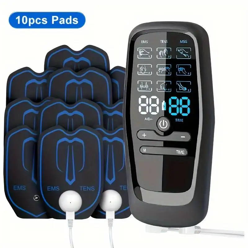 Massageador elétrico Tens com 6 modos, 19 níveis de intensidade para alívio da dor e dos músculos.A unidade TENS ajuda a aliviar a dor associada a músculos doloridos e doloridos no ombro, cintura, costas, pescoço, membros superiores/inferiores (braço/perna) devido ao esforço causado pelo exercício, excesso de trabalho ou atividades domésticas normais.Ative o mecanismo específico de porta de dor natural, relaxe seu corpo sempre que sentir necessidade com nosso massageador de pulso de eletroterapia TENS de nível profissional e acessórios.