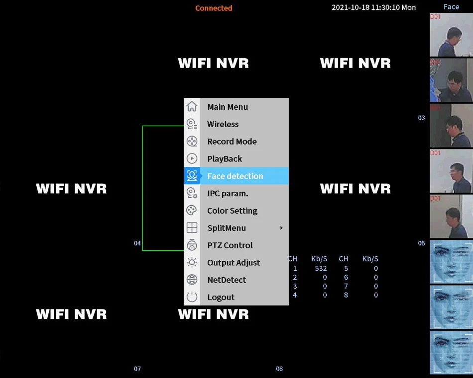 Suporta modelo Wifi 4CH 5MP/8CH 3MP, reprodução 4CH 5MP/8CH 3MP;