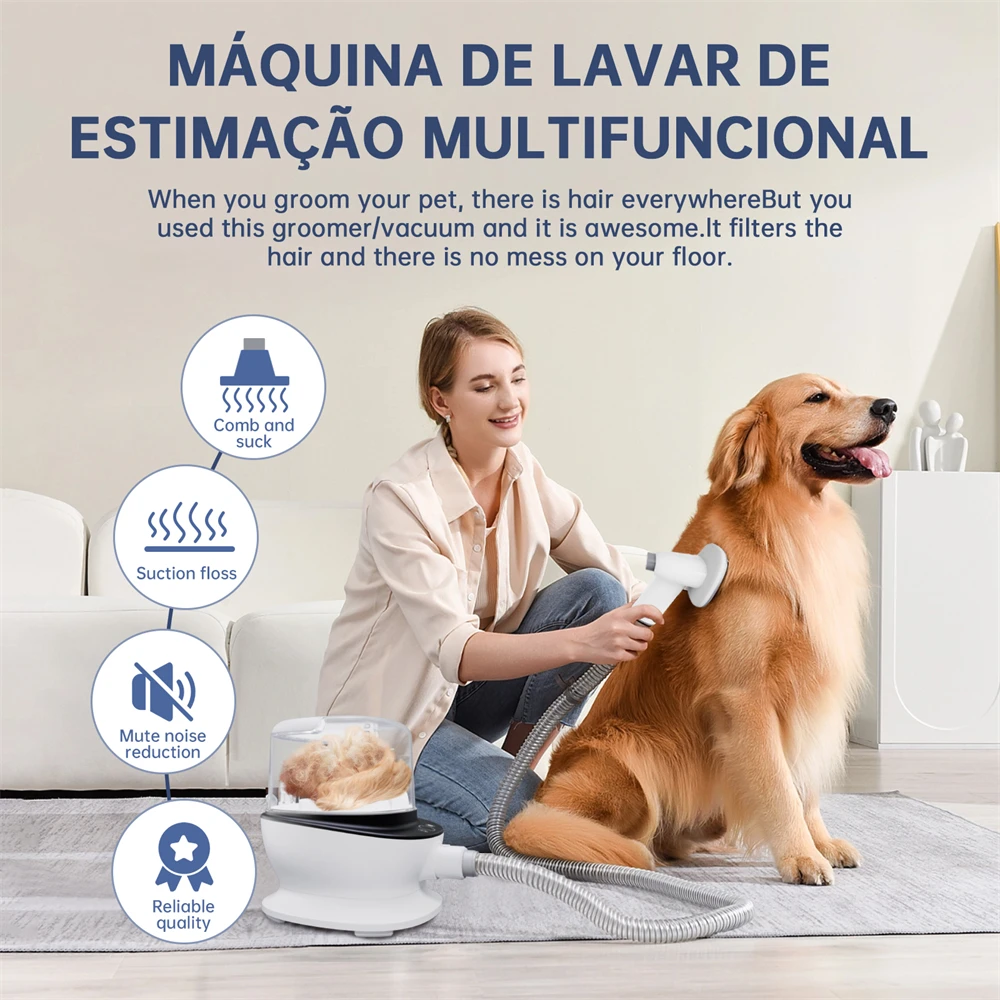 O dispositivo de beleza para animais de estimativa combinação funções de aparar, cuidar e limpar o cabelo em um, combinando cinco cabeças funcionais diferentes, tosquiar, pentear, removedor o cabelos e absorver o cabelos em uma máquina, e os serviços de cuidados das lojas de animais podem ser apreciados em casa.