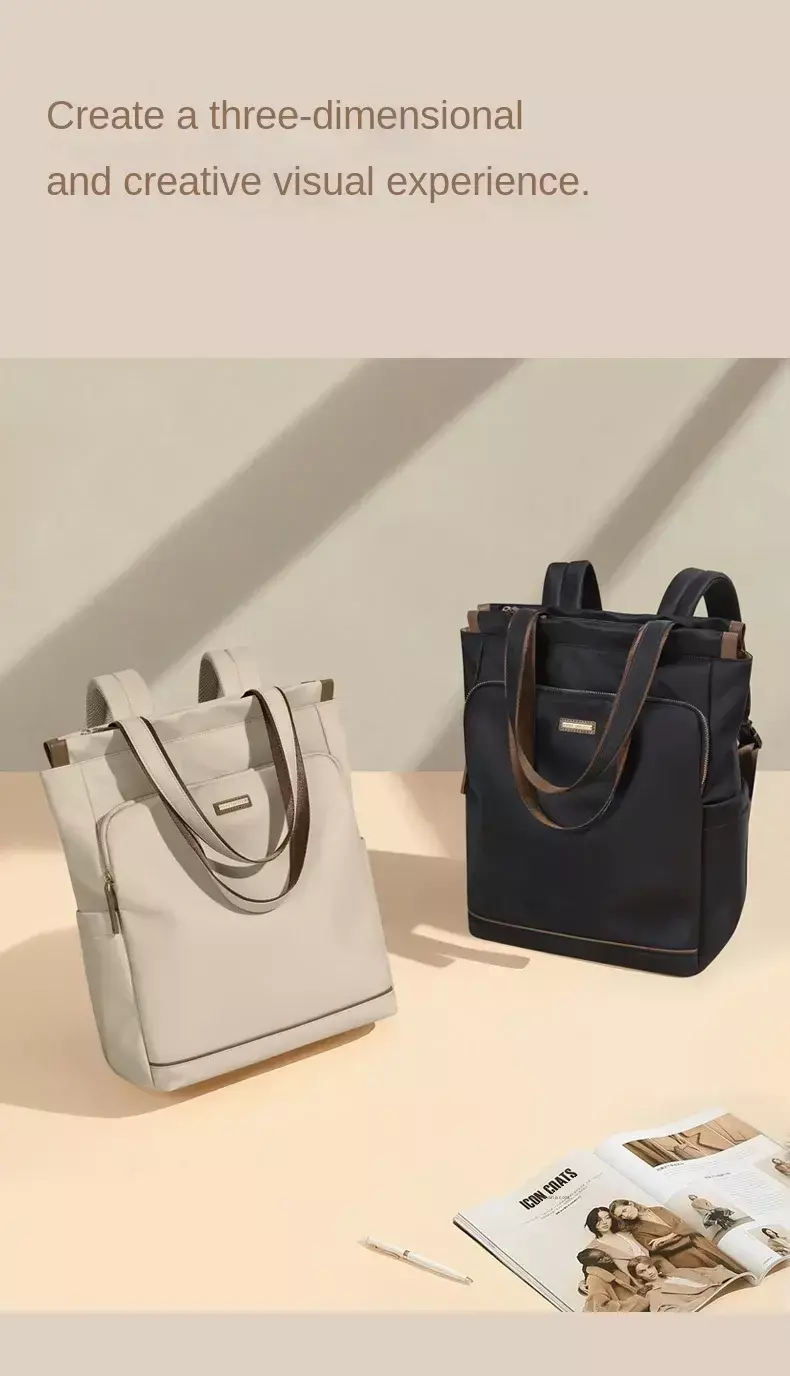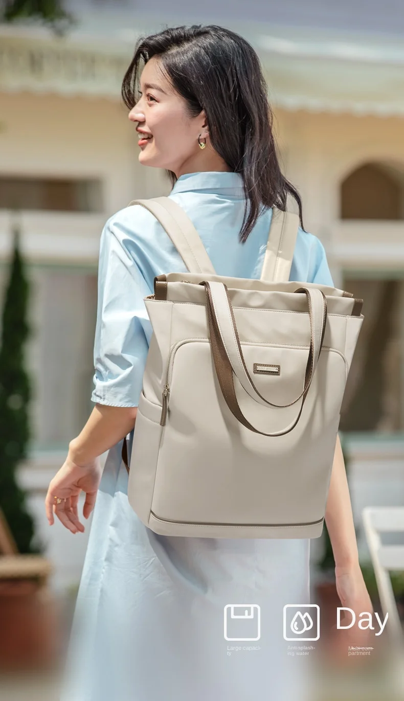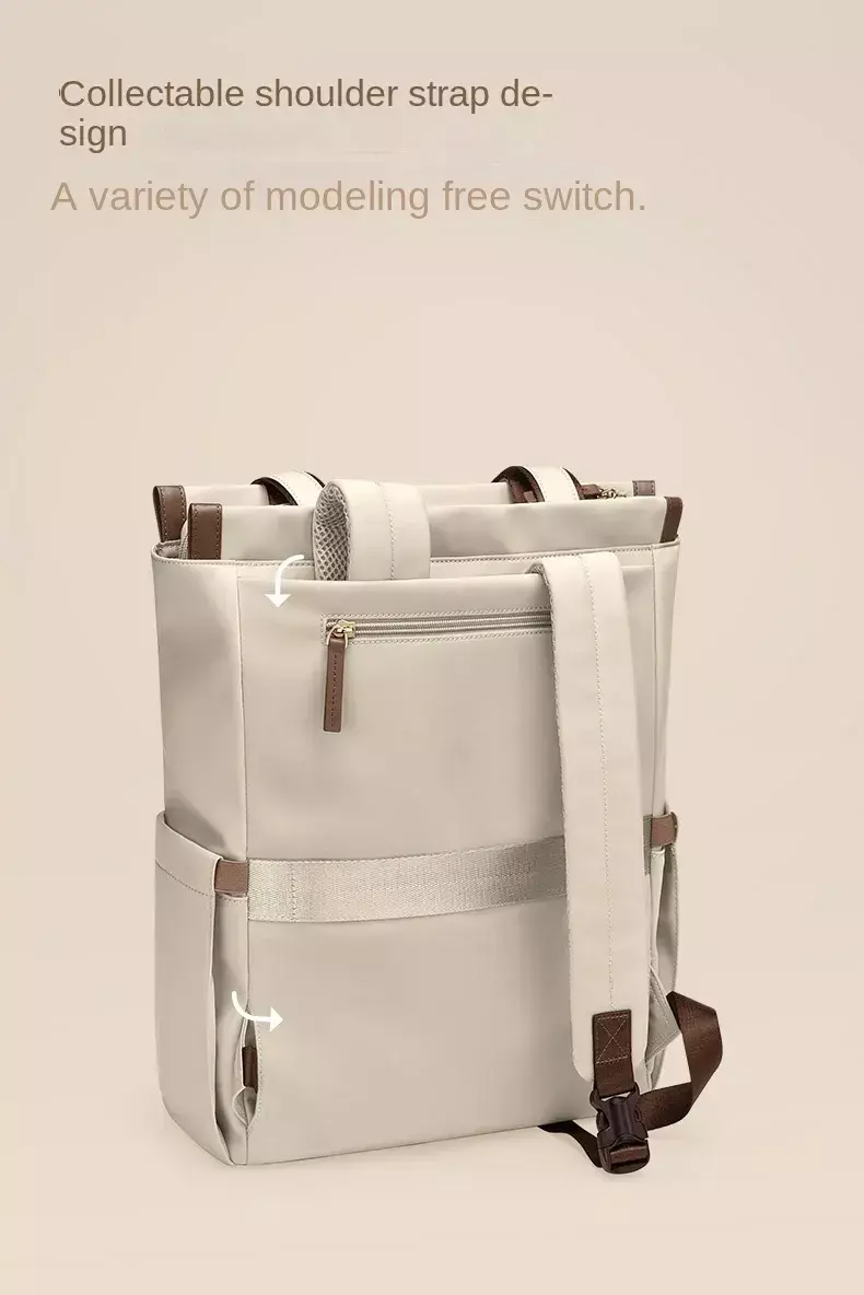Design de alça de ombro correspondente, as alças traseiras podem ser armazenadas, quando você a converte em uma bolsa de ombro, é quase impossível ver que também é uma mochila, elegante, estética e confortável.
