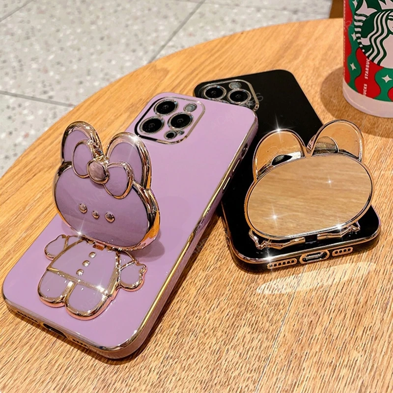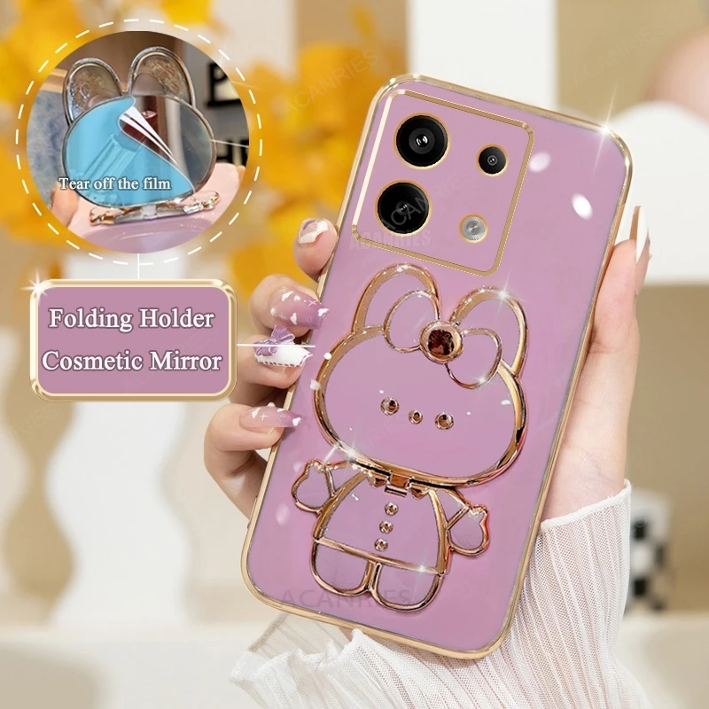 Condition: Luxury Plating silicone Cosmetic mirror cartoon Folding Holder Case on for xiaomi redmi note 13 pro plus 13pro 4g 5g note13 pro