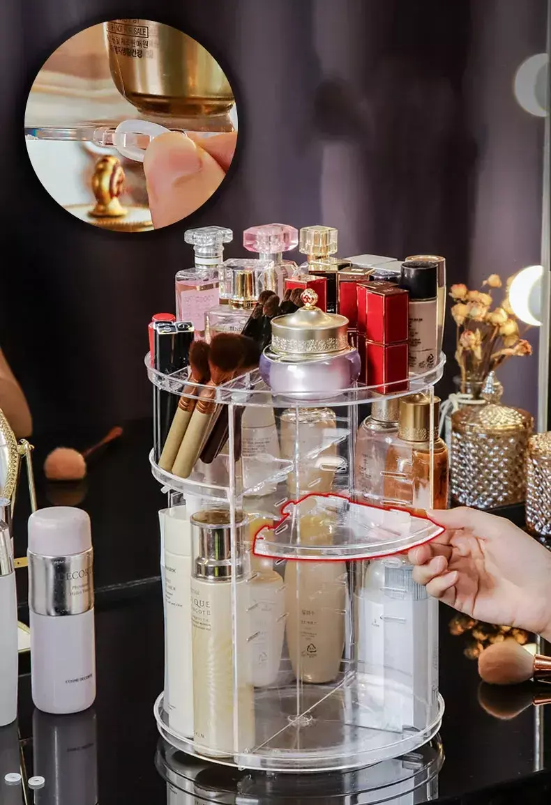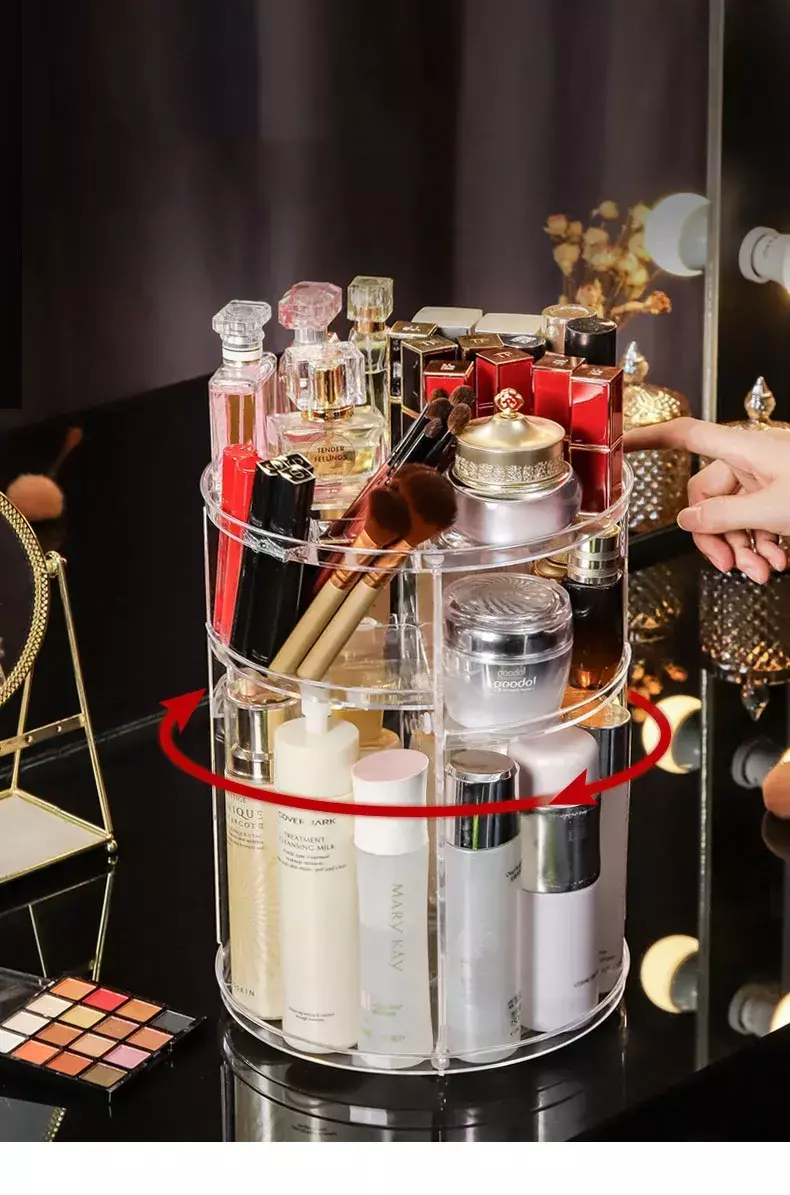 Organizador de maquiagem e cosméticos acrílica rotativa 360