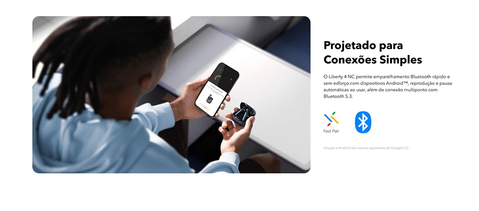 O Liberty 4 NC permite o emparelhamento Bluetooth rápido e sem esforço com dispositivos Android,