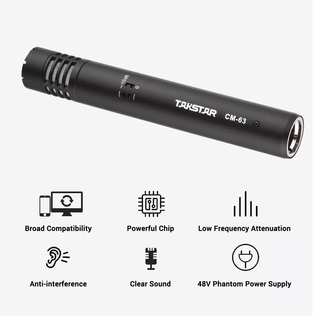 Nome da Marca: Takstartransdutor: Microfone Condensadortipo de Aparelho: Microfone Únicoproduto Químico de Alta Preocupação: Nenhumestilo: Tabletopuse: Estúdio Proorigem: cn (origem)padrões Polares: Cardióidediafragma: S-mall Características:microfone Condensador Profissional com Cápsula de Diafragma Banhada a Ouro, Cartucho Transdutor de Gradiente de Pressão e Padrão de Captação Cardioide, Garantindo Excelente Resposta Transitória, Resposta de Frequência Ampla, Alta Sensibilidade, Reprodução de som Precisa e Clara. Adote Tecnologia Inovadora Resistente à Umidade, o Microfone Pode Funcionar bem e de Forma Constante sob Todas as Condições Climáticas; com fet Embutido Para Baixo Ruído e Pré-amplificador Hi-fi otl Para Amplificação Linear de Alta Qualidade e Baixa Distorção. Baixa Impedância de Saída, Pode Manter em Conexão em uma Grande Distância, Minimizando o Desperdício de Energia, Tendo Alta Capacidade de Resistência Emi. Baixa Frequência Atenuação e Sensibilidade Atenuação Switch Design, Adequado Para Várias Ocasiões, Perfeito Para Gravação em Estúdio Profissional, Transmissão ao Vivo, Transmissão de Tv, Desempenho do Palco, Instrumento Tocando Gravação. Plugue Xlr, Alimentado por Phantom 48v, sem Necessidade de Carregamento, Plug and Play, Rápido e Conveniente. vem com um Suporte de Microfone Rotativo 180 °, Pode ser Montado em um Suporte de Microfone, Mais Conveniente de Usar. Feito de Plástico Premium e Metal, Garantindo um Serviço de Longa Data. Especificações:marca: Takstar Cor: Preto Materiais: Metal & Plástico Elemento: Cápsula de Diafragma Banhada a Ouro Princípio do Transdutor: Pressão Gradiente Transdutor Padrão Polar: Cardióide Frequência Resposta: 30hz-20khz Sensibilidade: -35db ± 2db (0db = 1 V/pa em 1khz) Saída Impedância: 200? ± 30% (a 1khz) Carga Impedância: >= 1000? Nível de Ruído Equivalente: Max. Entrada Spl: 130db (t.h.d >= 140db (com Almofada 10db) (t.h.d Baixo Filtro: 12db/oitava a 100hz Alimentação: 48v dc Phantom Power Tamanho do Produto: 14,5*2,2*2,2 cm/5,7*0,8*0,8 Polegadas Peso do Produto: 121g/ 4.2oz Tamanho do Pacote: 21,8*13,2*6,2 cm/8,5*5,1*2,4 Polegadas Peso do Pacote: 411g/ 14.4oz Lista do Pacote1 * Microfone Suporte do Microfone 1 *