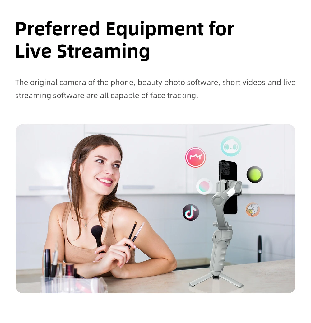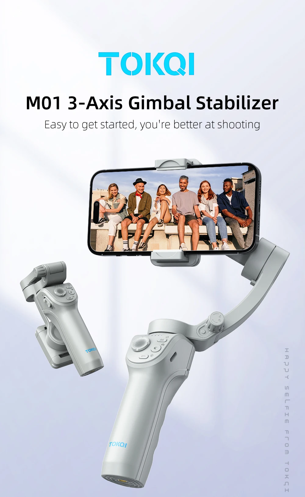 Tokqi m01 estabilizador de telefone gimbal portátil com luz de preenchimento para smartphone 3 eixos anti-vibração suporte dobrável tripé de selfie para iphone