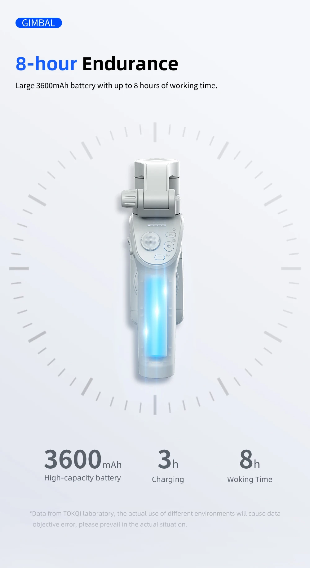 6.Bateria integrada de 3600mAh, até 8 horas de trabalho.